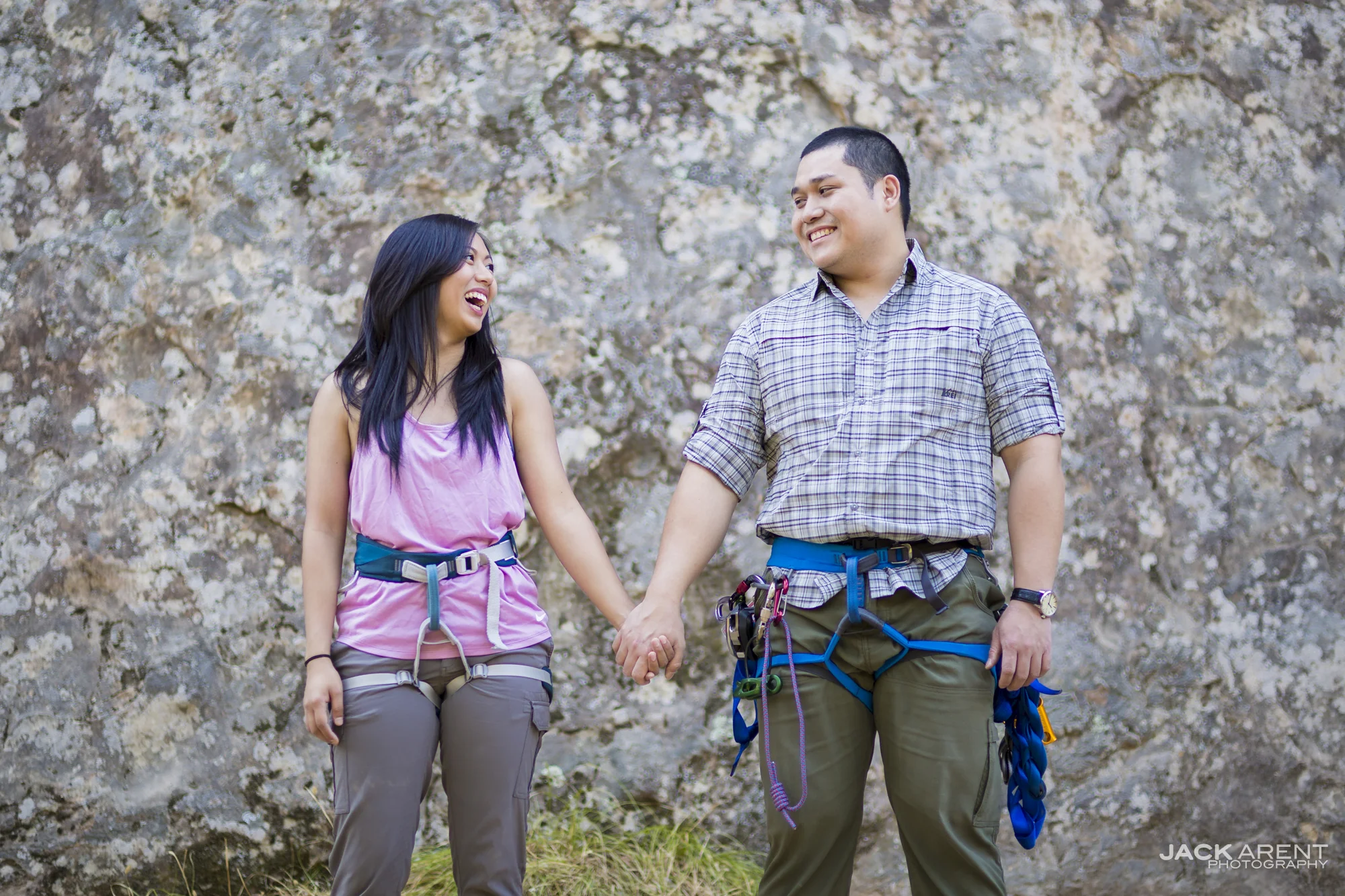 When I think of the first conversation I had with Bernardo and Berniece I can remember agreeing to photographing their engagement photos while rock climbing because I had some experience climbing fifteen years ago. Then when it actually came time to photographing them rock climbing and I realized the best photographic angle required me to repel down off the rock with a camera attached to my neck, I thought "what the hell am I doing"!