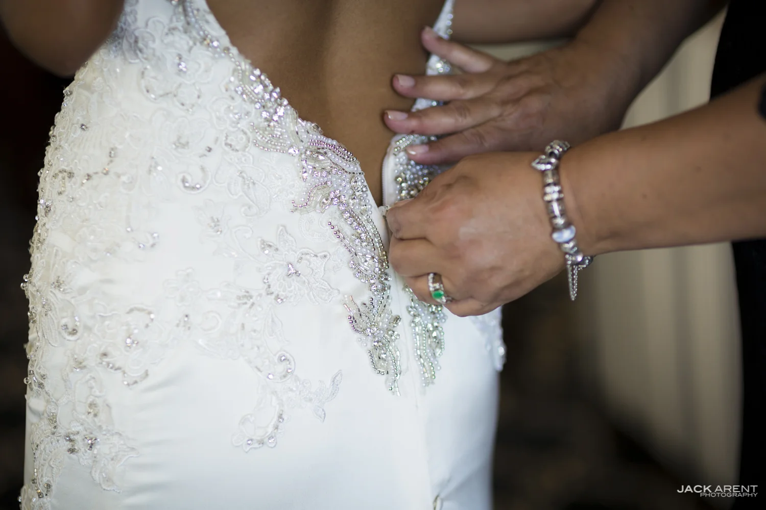 The bead detail on Jennifer's dress was beautiful, mom and the bridesmaids helped with the perfect fit.