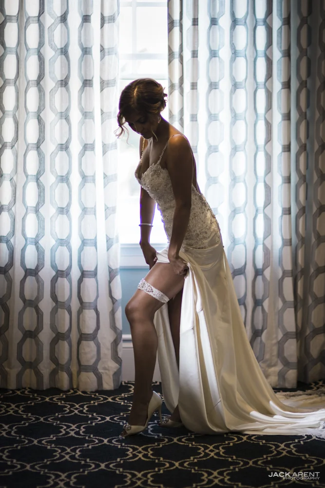 I had twice as much time in the bridal suite as I normally do which gave me a chance to set up a technically lit portrait for a different look. The concept was to highlight the garter as to give the bride an appeal leaving the viewer looking for more.