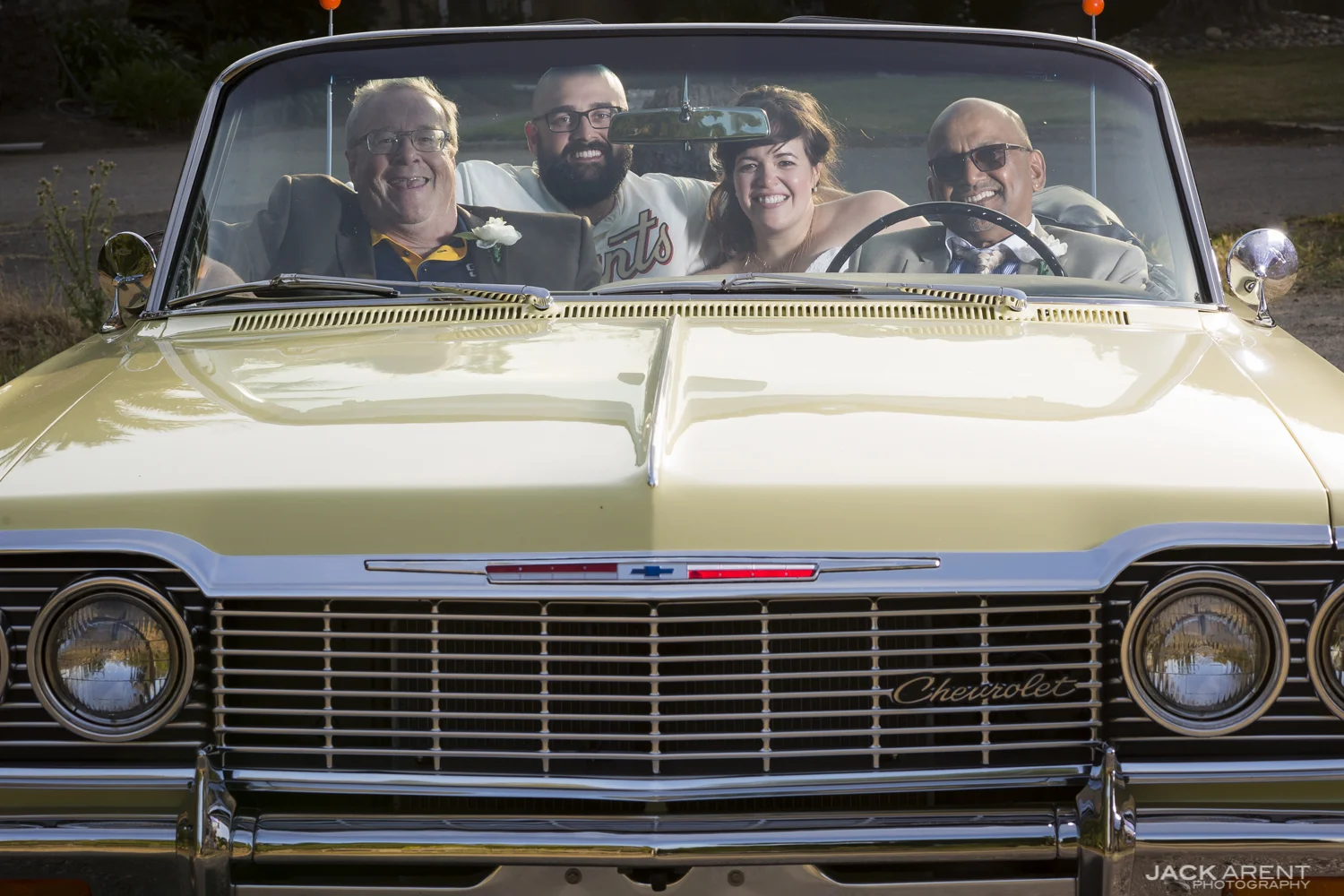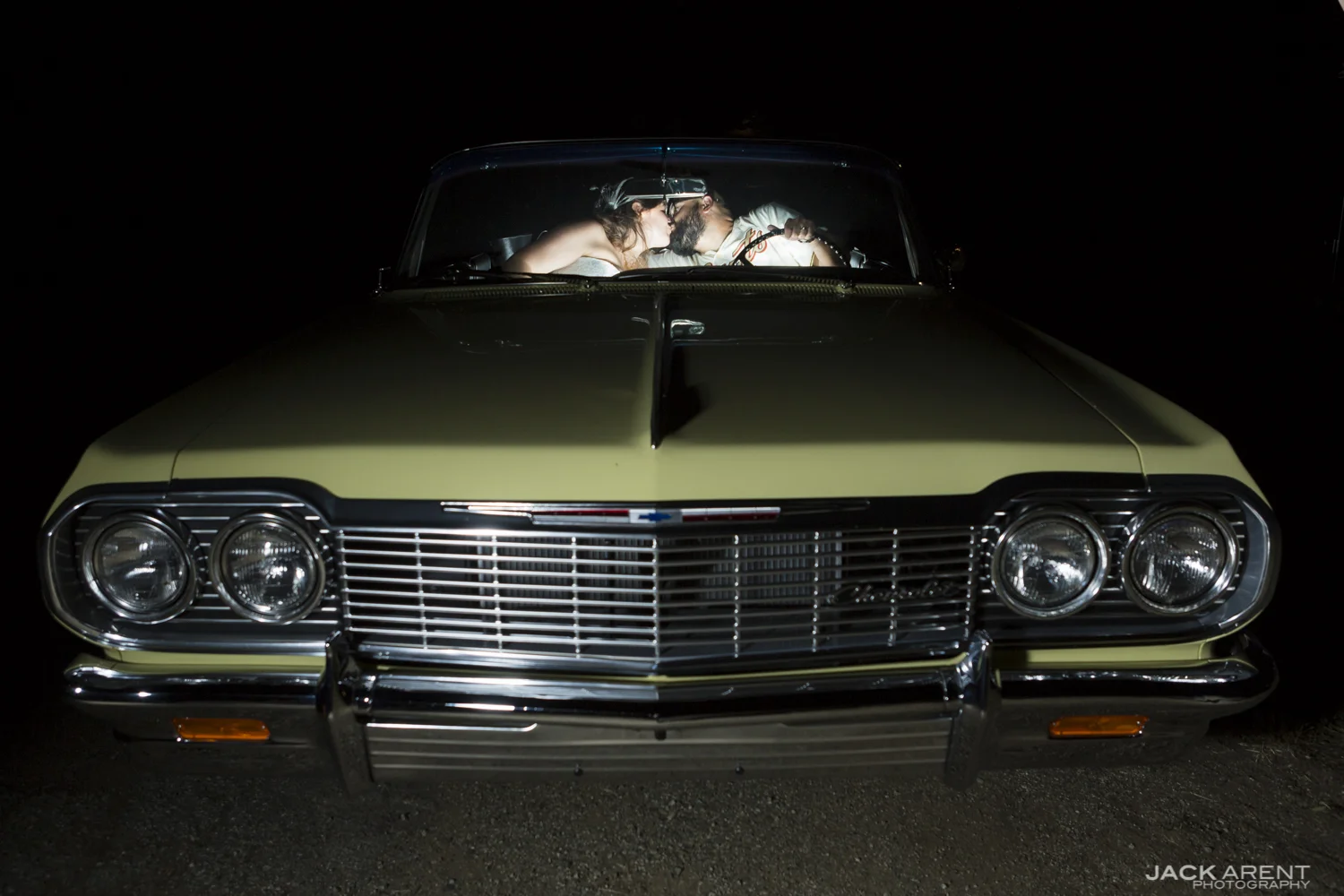 When I first met with Kristen and John I knew within the first thirty seconds of meeting them that they were going to be a lot of fun to work with. One of the main formal photos they wanted captured was John's father's 1964 Chevy Impala with Kristen's father riding shotgun, later in the night we quickly made a nighttime version in just 7 clicks of the camera.
