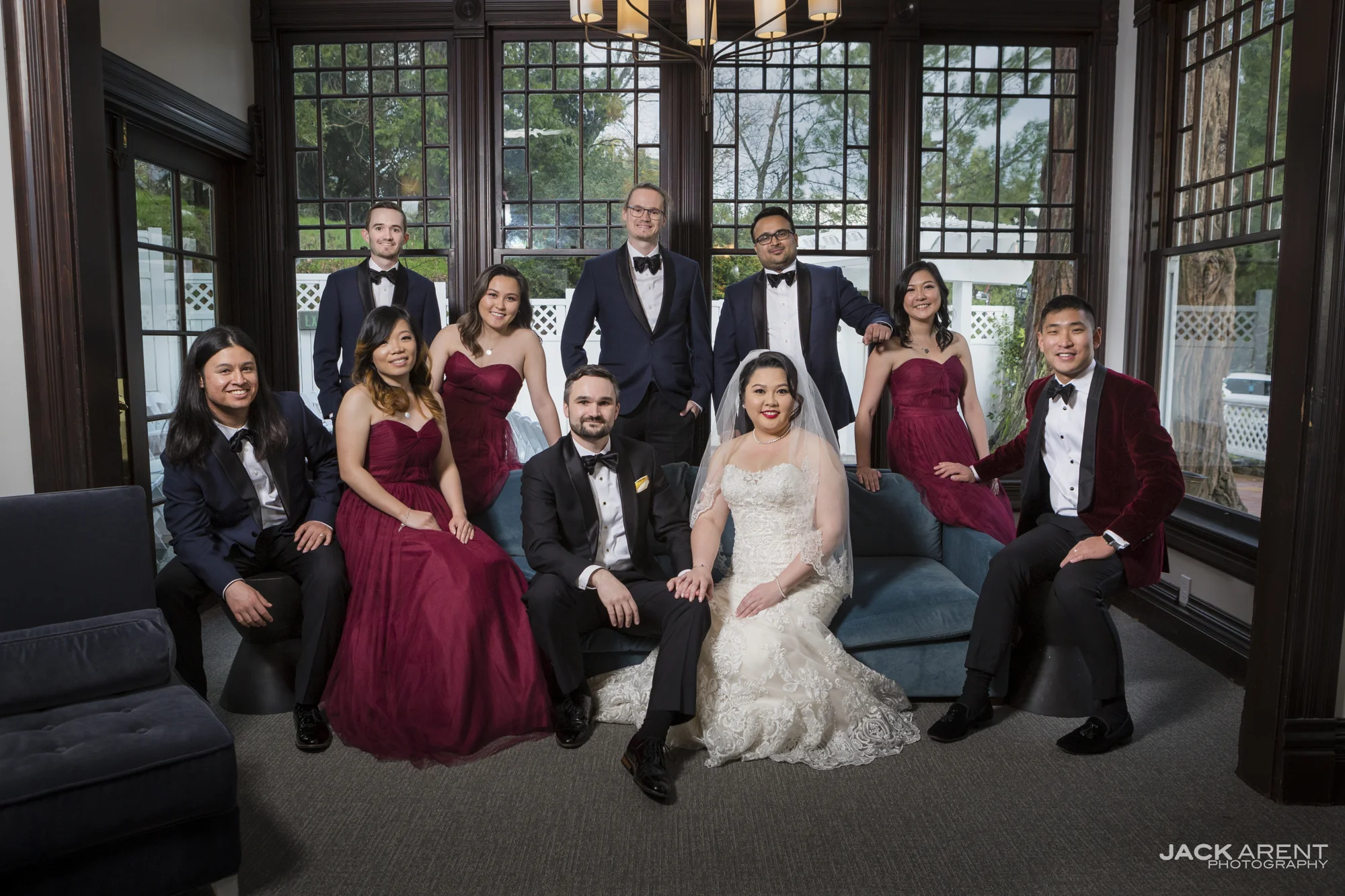 Heidi and Donnie asked me during our final meeting prior to their wedding to create a Vogue magazine style photo of their wedding party, so we set up this group picture at Sequoia Mansion.