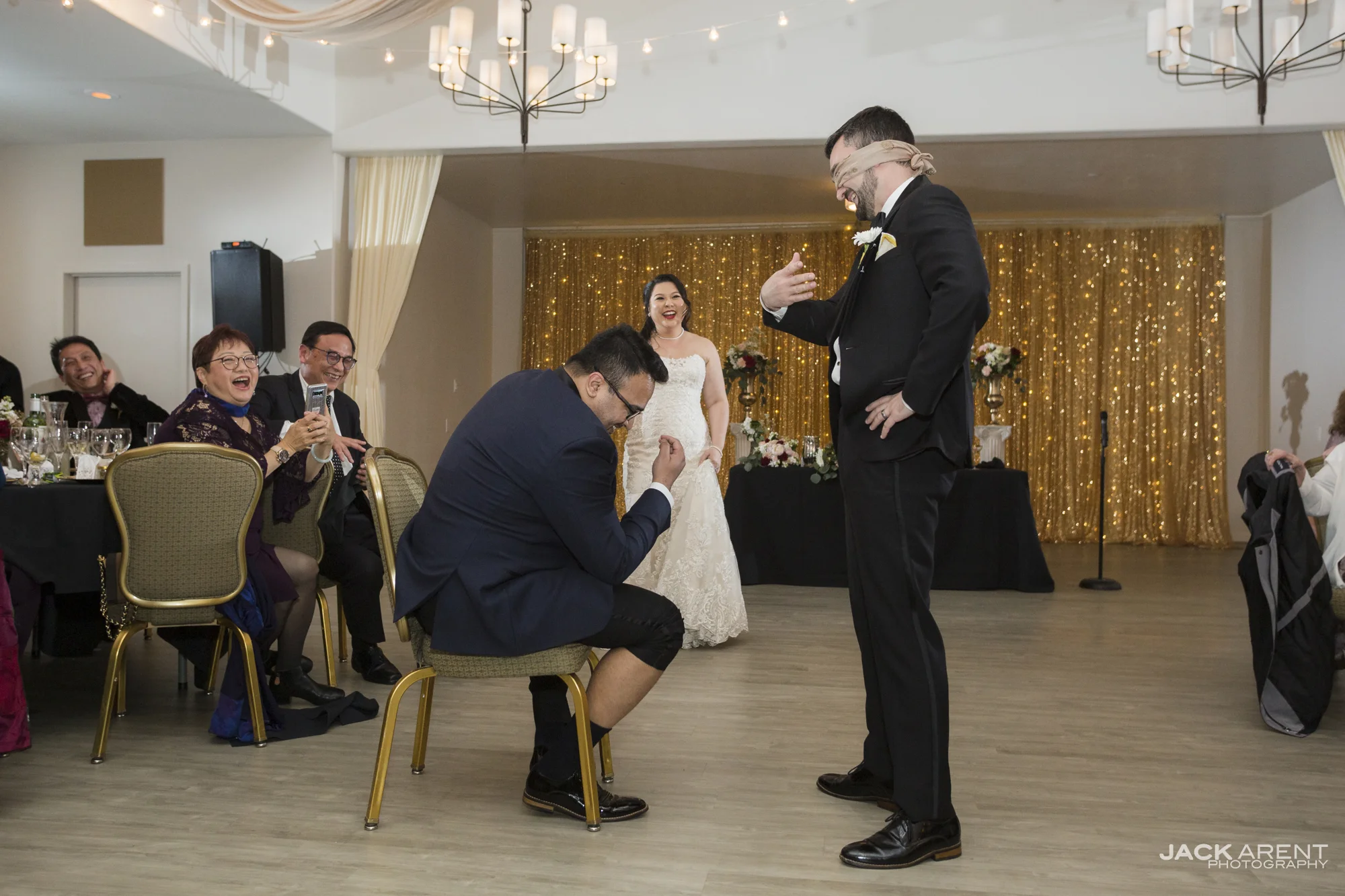 I love seeing the reaction of the groom as he discovers his bride isn’t where she was before his blindfold was put on.